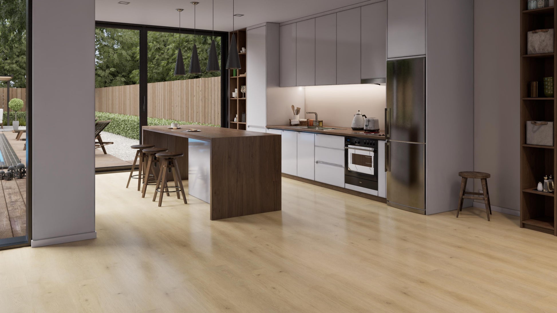 Die Premium Collection bietet extra breite Dielen mit integrierter Trittschalldämmung (bis zu 21 dB), realistischen Eichenoptiken und Nutzungsklasse 42 – perfekt für stark beanspruchte Wohn- und Gewerberäume. Im Format 1220 × 229 mm, 5 mm stark, mit 15 Jahren Garantie.